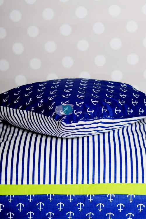 • wzór: białe kotwice na granatowym tle / granatowe paski