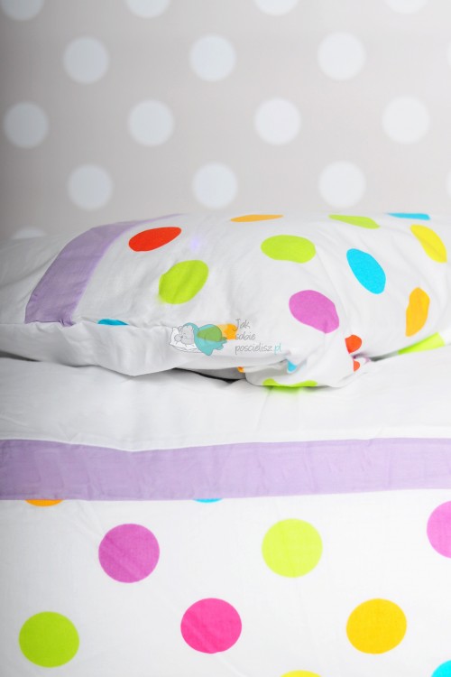 • wzór: kolorowe grochy na białym tle / biały